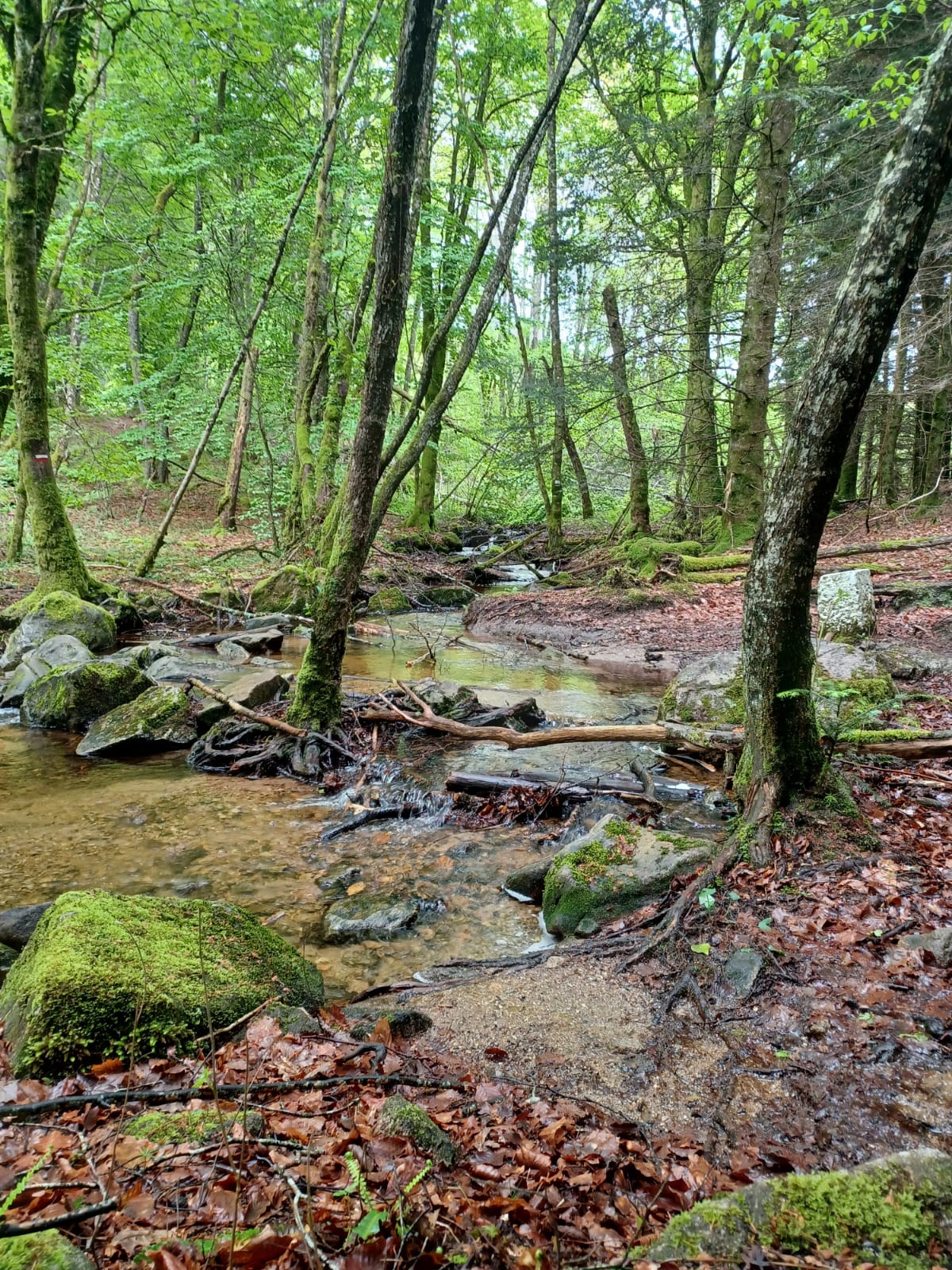 Les ruisseaux serpentent entre les arbres, apportant leur fraîcheur et leur murmure constant. Les fougères, les fleurs sauvages et la densité de la végétation donnent au paysage une richesse presque intacte.